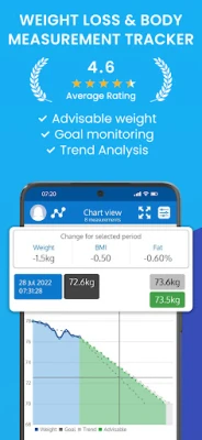 And that's not all. Our weight app also features: Trend Analysis, Health Connect, Graphs, Reminders, Body Fat Calculator, Excel Export and Imports, and weight and BMI tracker to manage your weight management goals. Use it to monitor your weight, track improvements in body fat, and see your body measurements over time.
