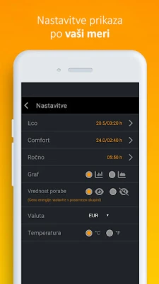 S pomočjo aplikacije lahko na en mah spreminjate nastavitve v celotnem grelnem sistemu ali na posamičnih grelnih elementih. S samo enim klikom lahko spreminjate režime ogrevanja (Eco, Comfort, Urnik), vključite ali izključite ogrevanje, spreminjate splošne nastavitve, hkrati pa lahko spremljate trenutno delovanje grelnega sistema in porabo.